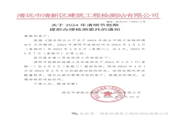 關(guān)于2024春節(jié)提前辦理檢測委托...